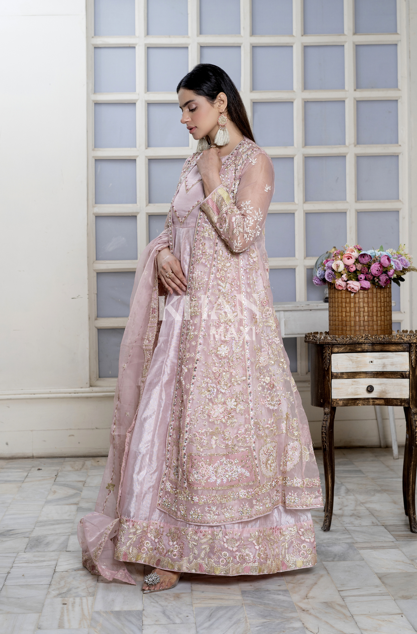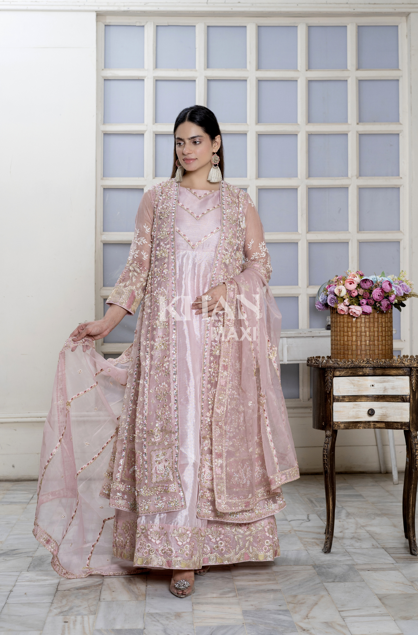 Radiate regal elegance with the Shehar Bano Gold from Khan Maxi, a breathtaking creation that captures the essence of timeless glamour. Crafted in a rich golden hue, this statement gown is adorned with intricate hand embellishments, shimmering sequins, and delicate beadwork that illuminate every movement.